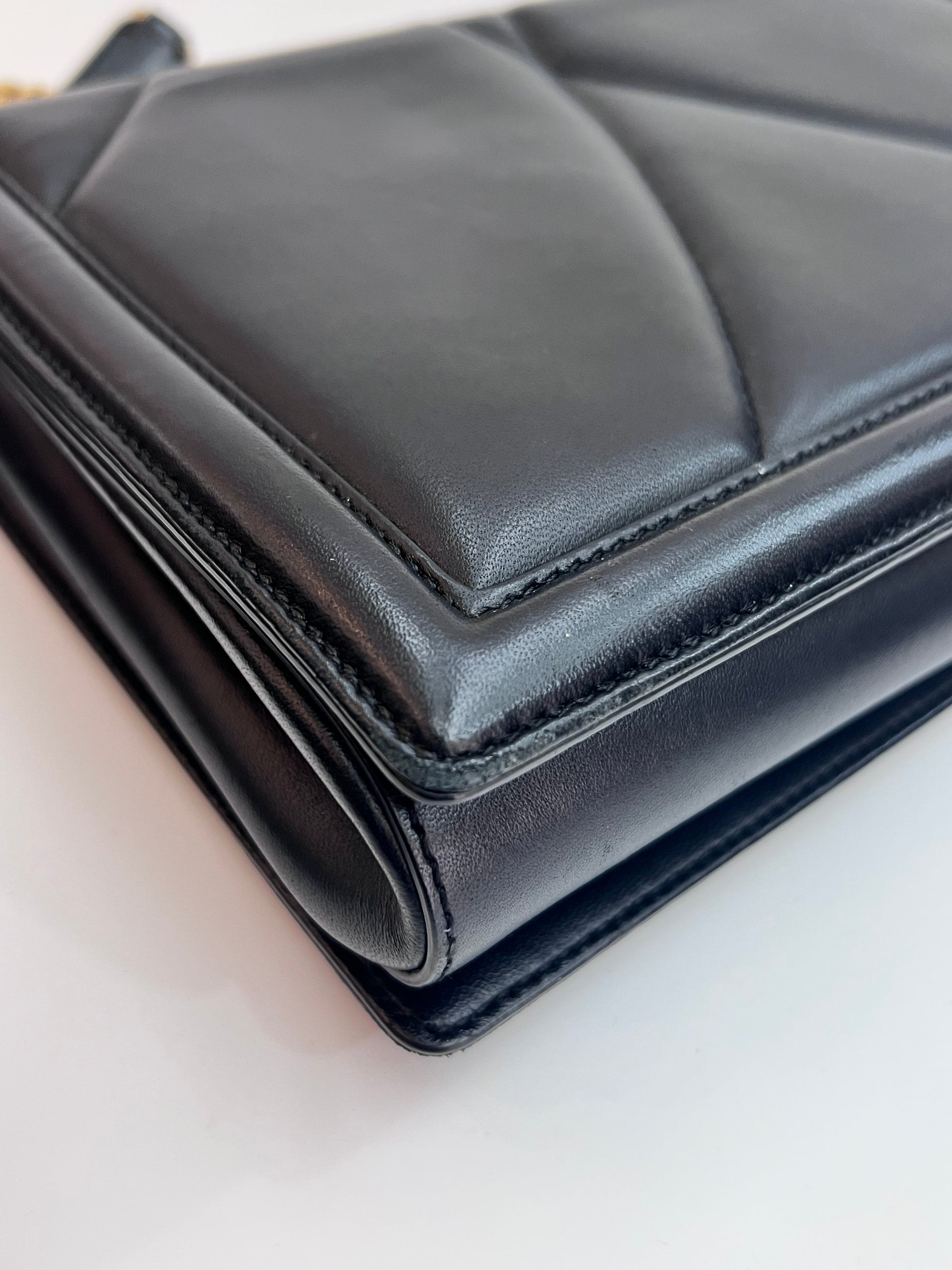 Marcas de uso: Cantinhos desgastados e leves arranhados no couro