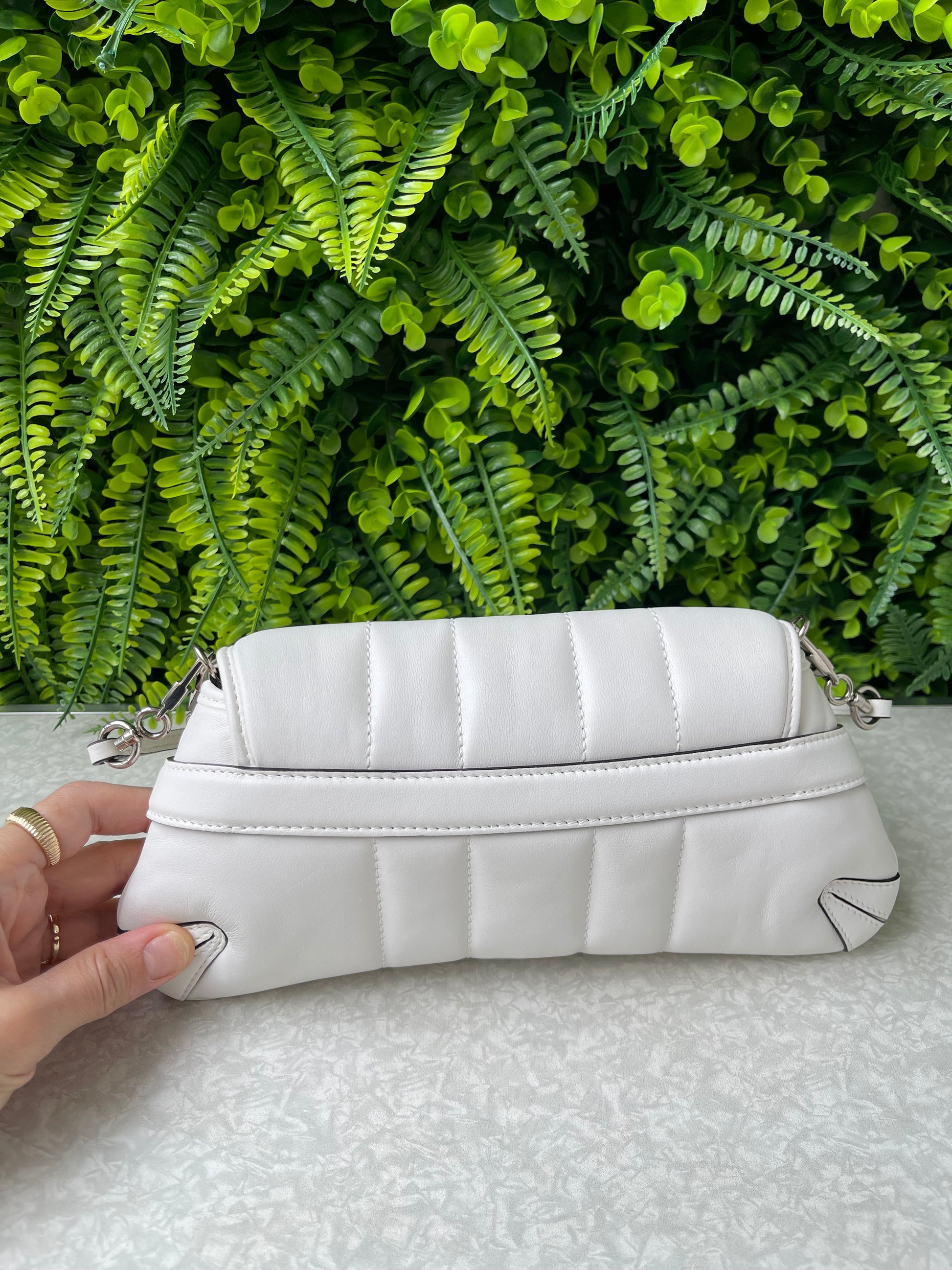 O item acompanha: caixa, dust bag, 2 alças removíveis (corrente prateada e couro) e impressos da marca